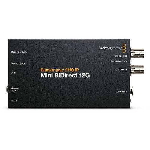 View your SMPTE 2110 IP broadcast signal to HDMI displays with this 2110 IP Mini IP to HDMI Converter from Blackmagic Design. The converter allows you to monitor SMPTE 2110 IP camera signals with up to UHD 4K resolution with audio on an HDMI display. It features a 10G Ethernet port that inputs SMPTE 2110 IP video and supports up to 16 channels of audio.